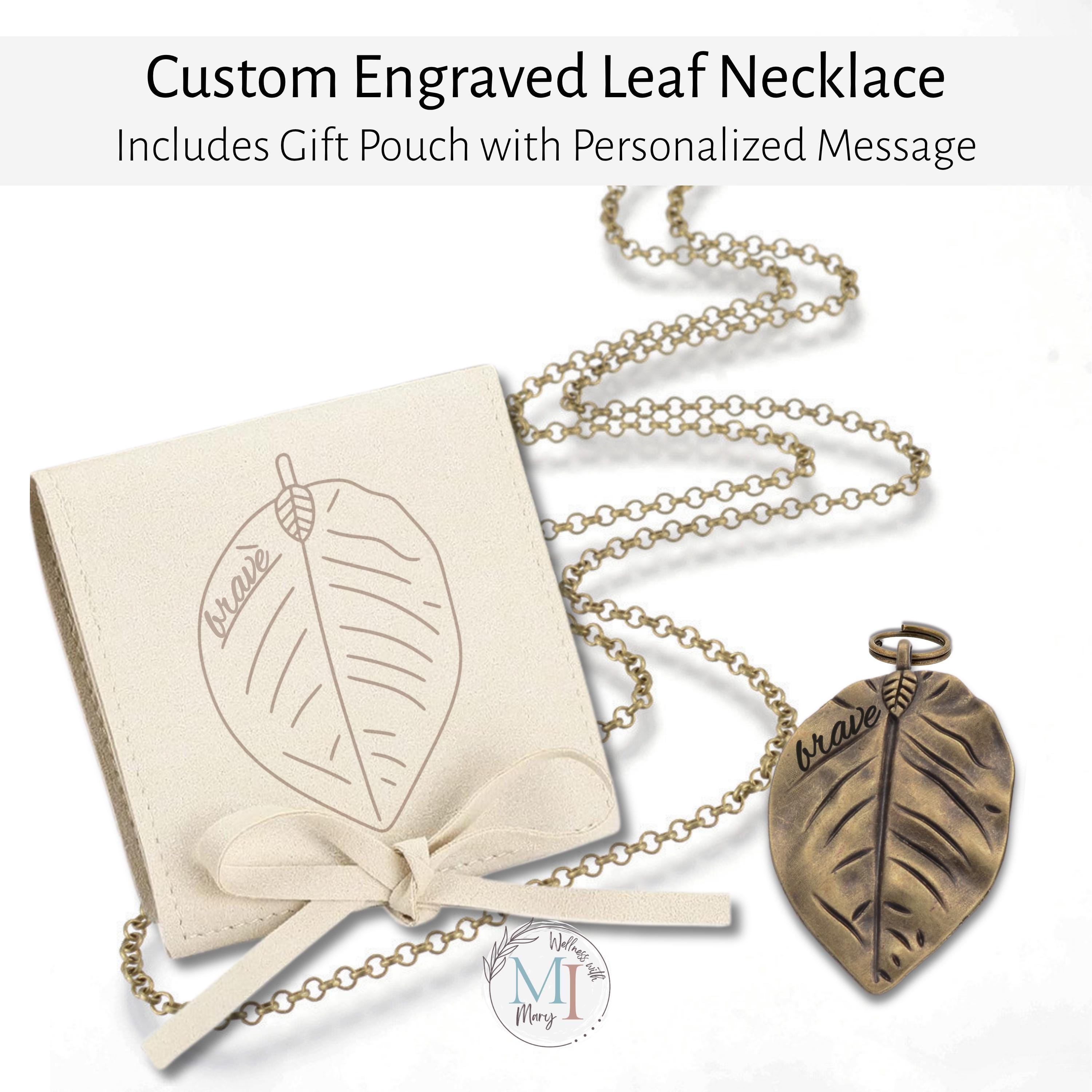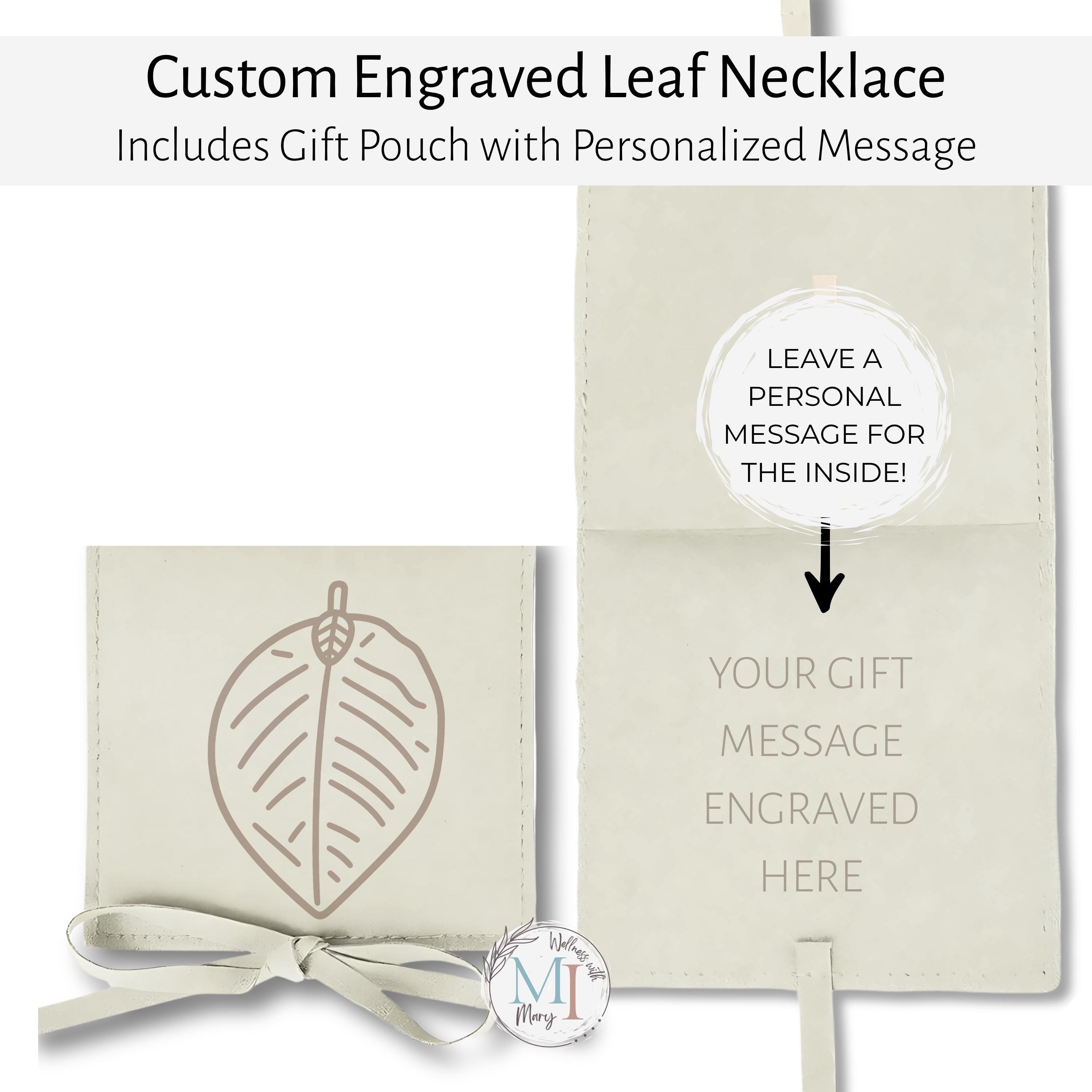 Each necklace comes in a soft microfiber suede pouch featuring a matching leaf design.