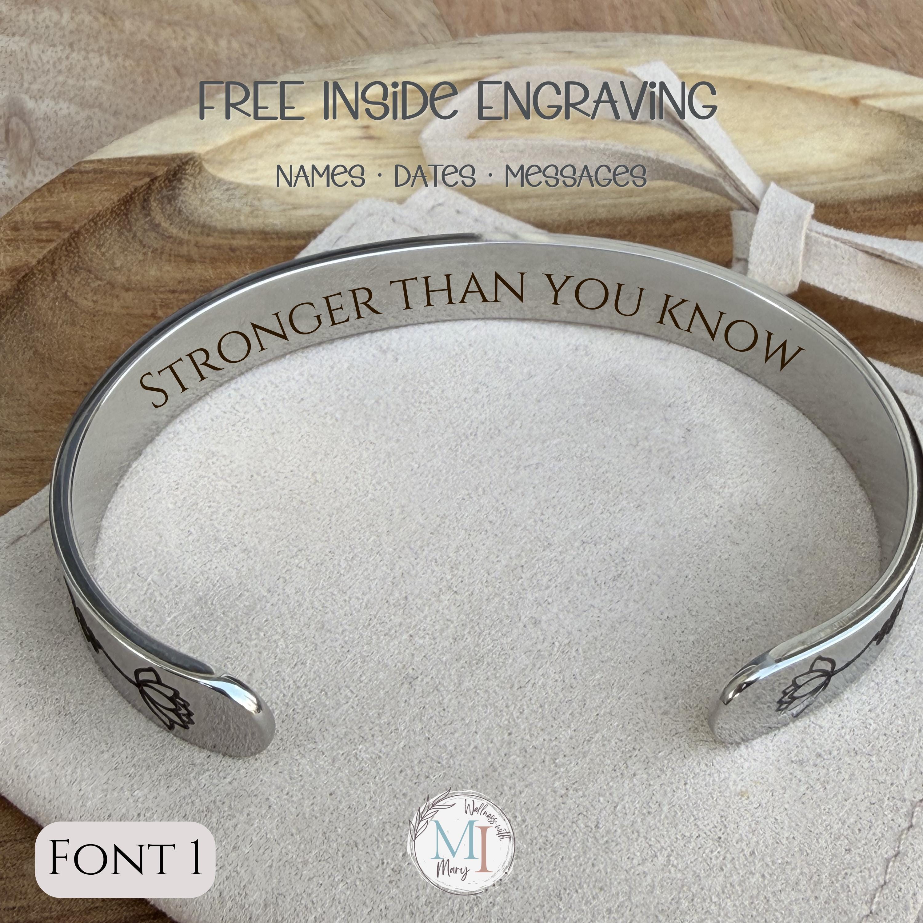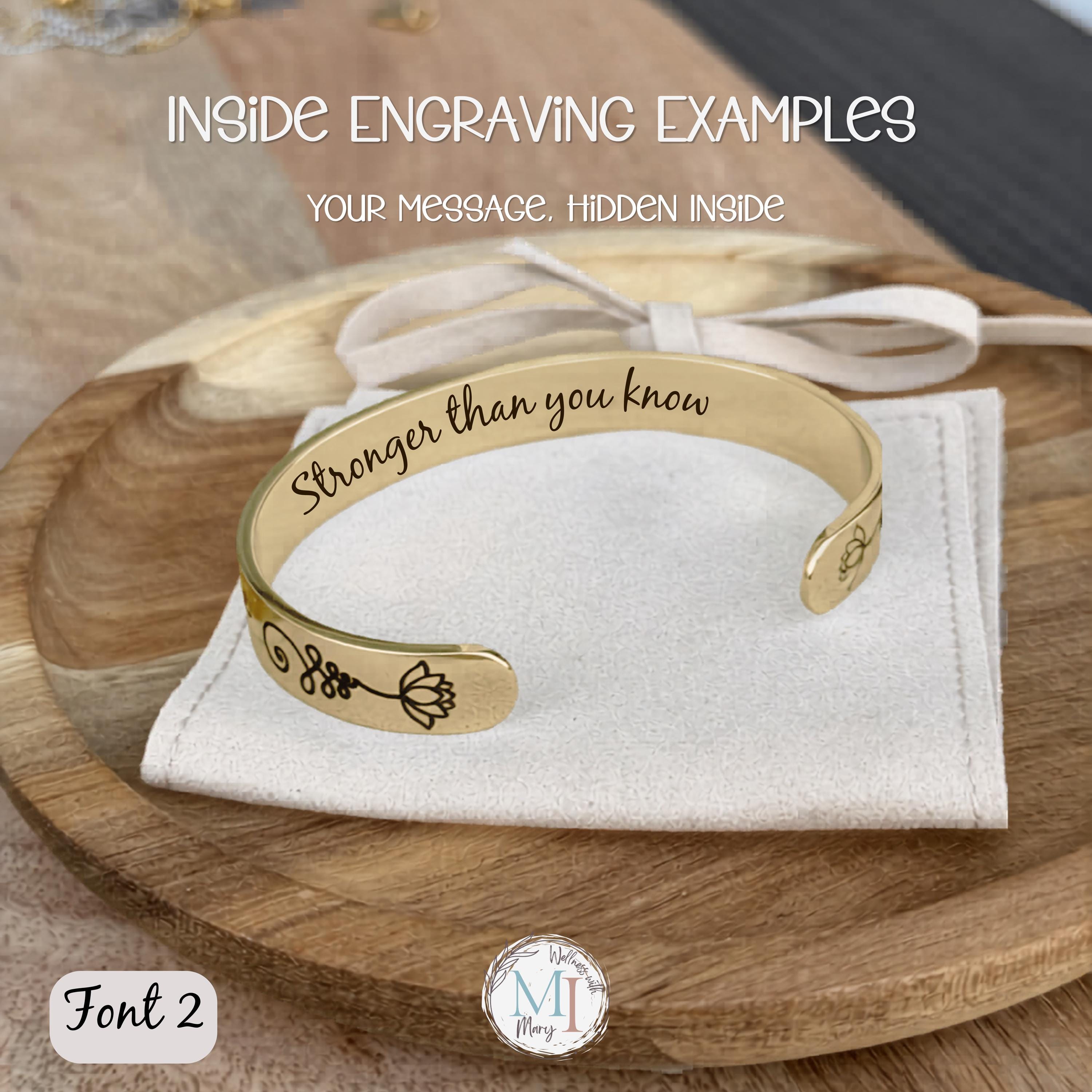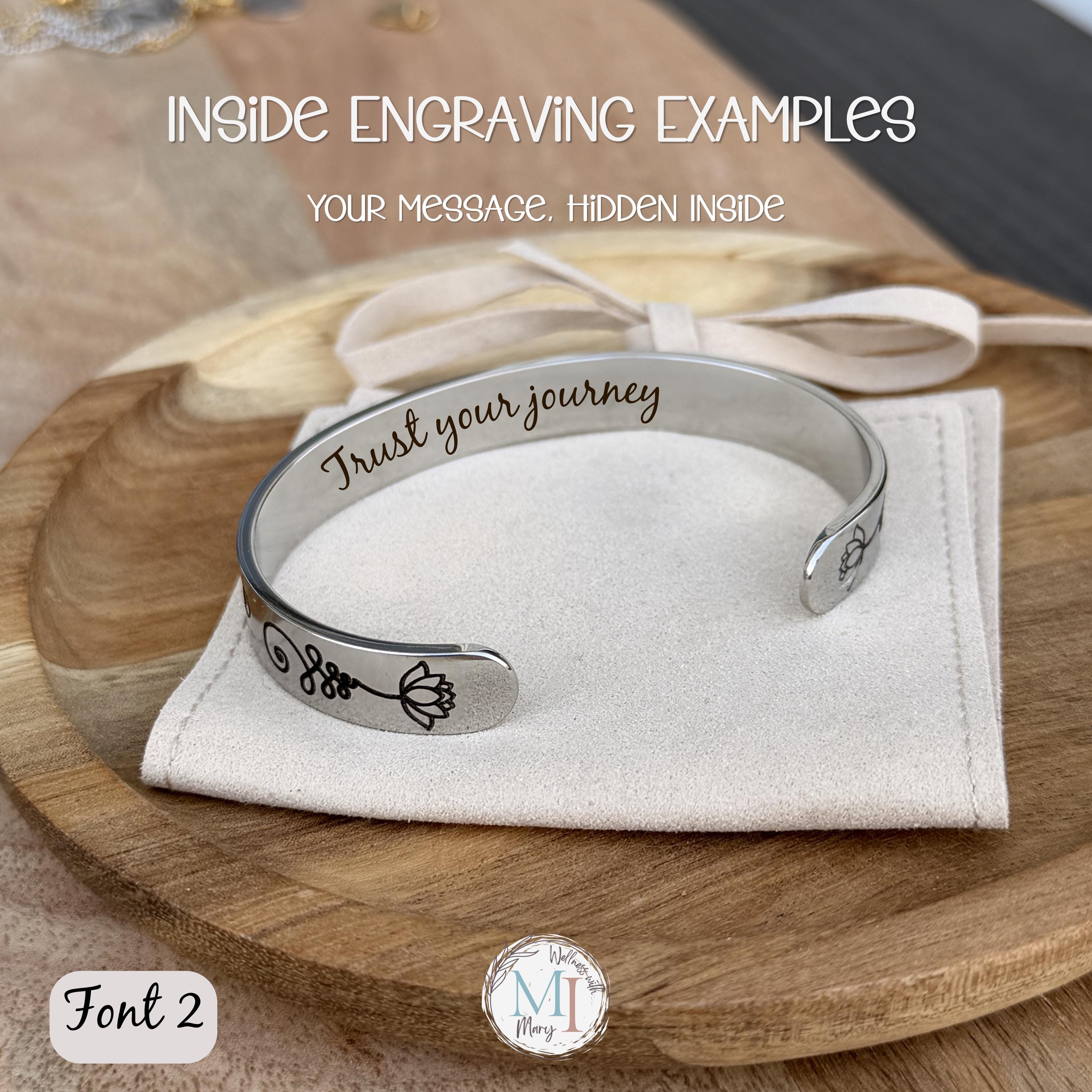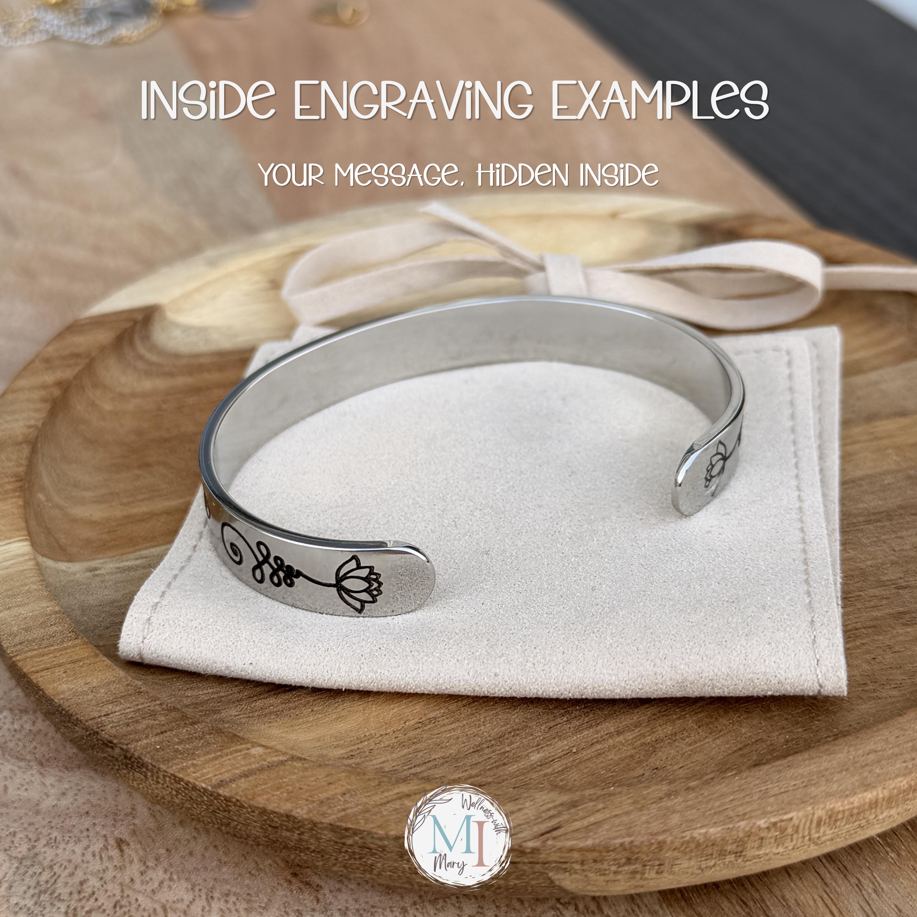 The inside of the cuff can be engraved at no extra cost with: