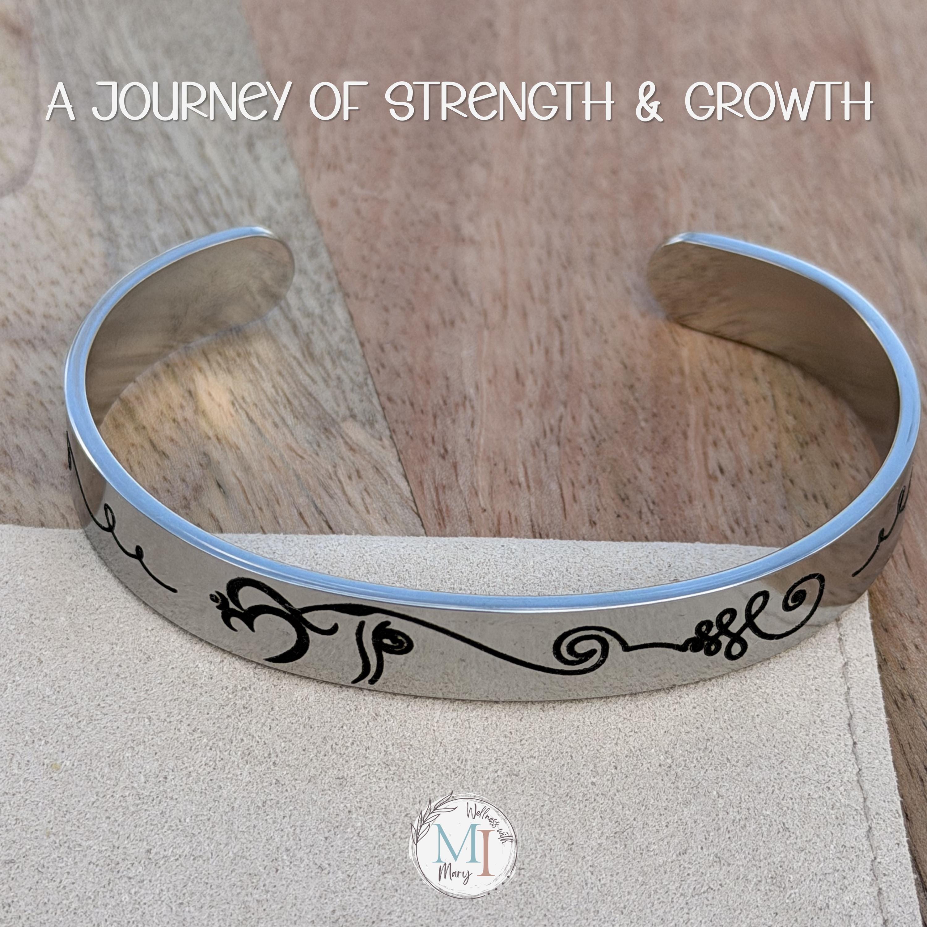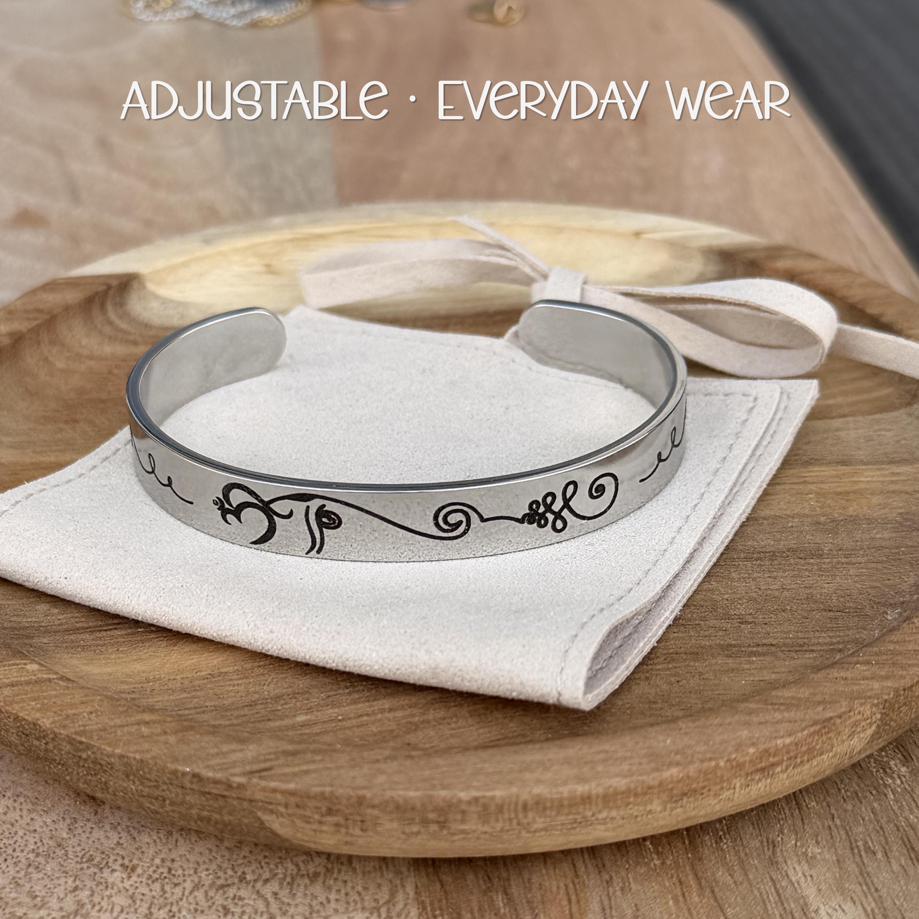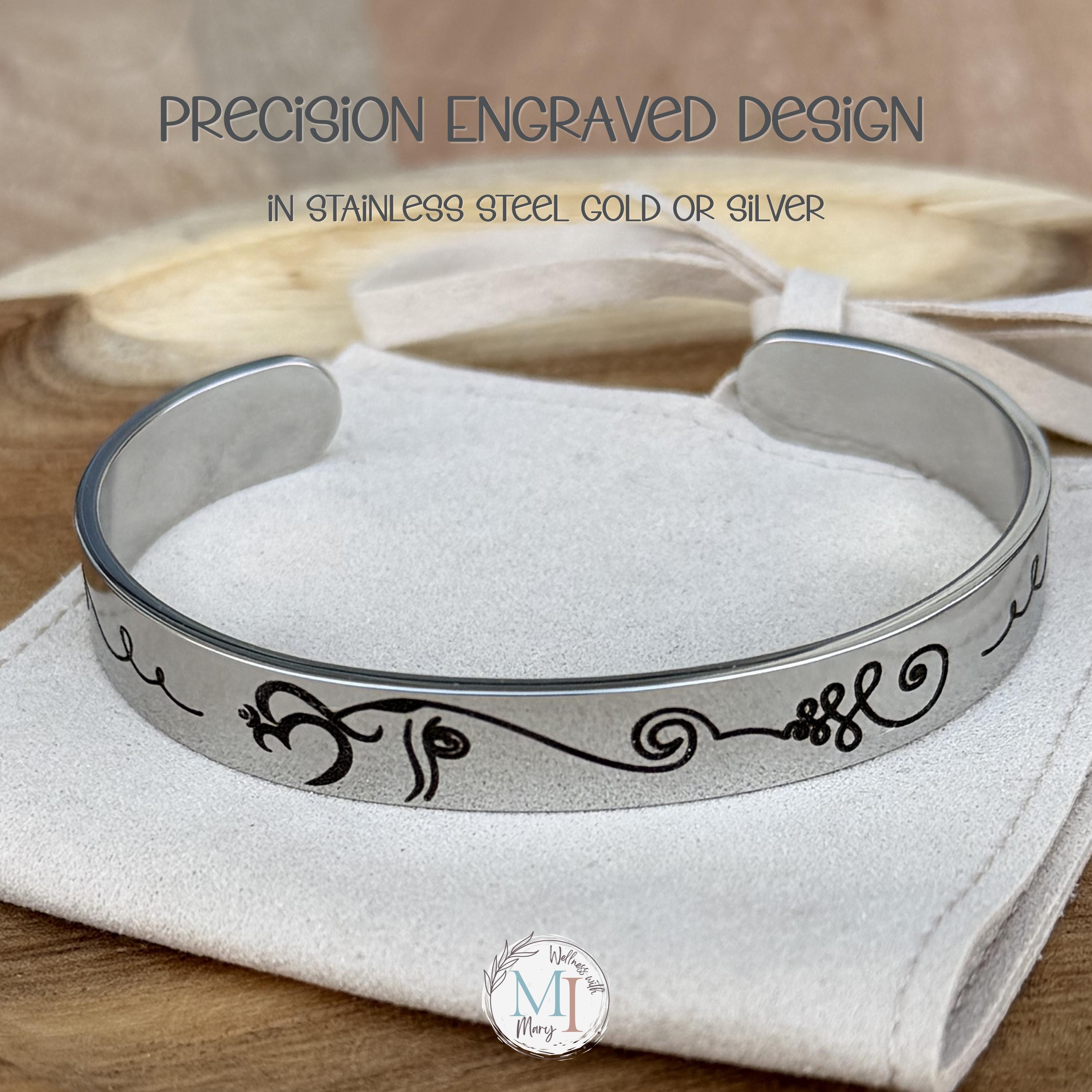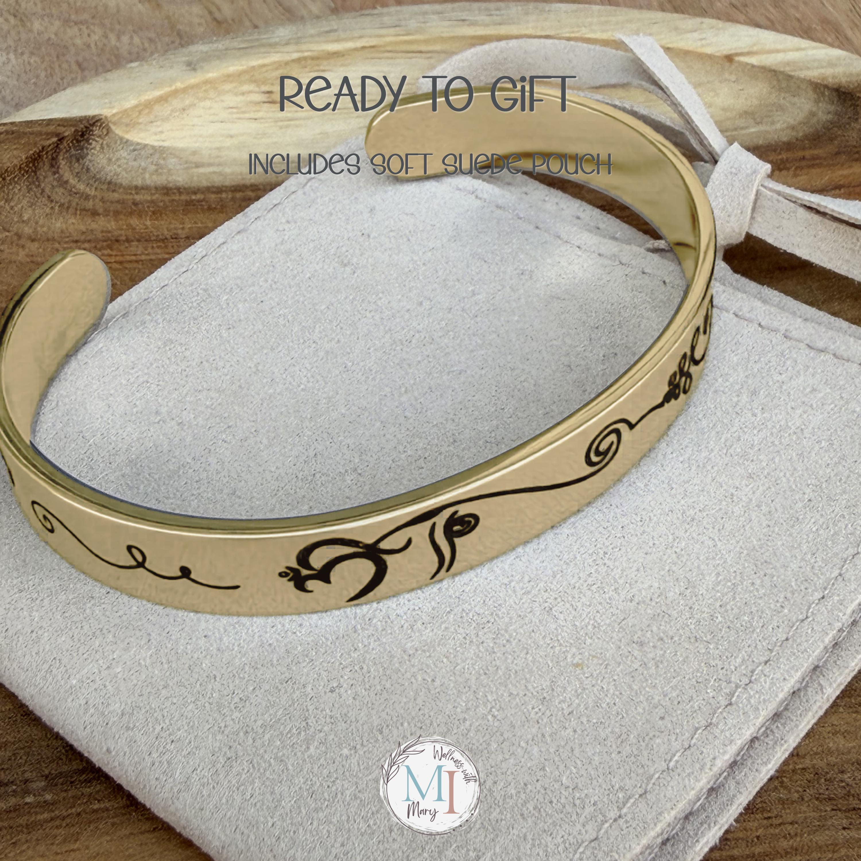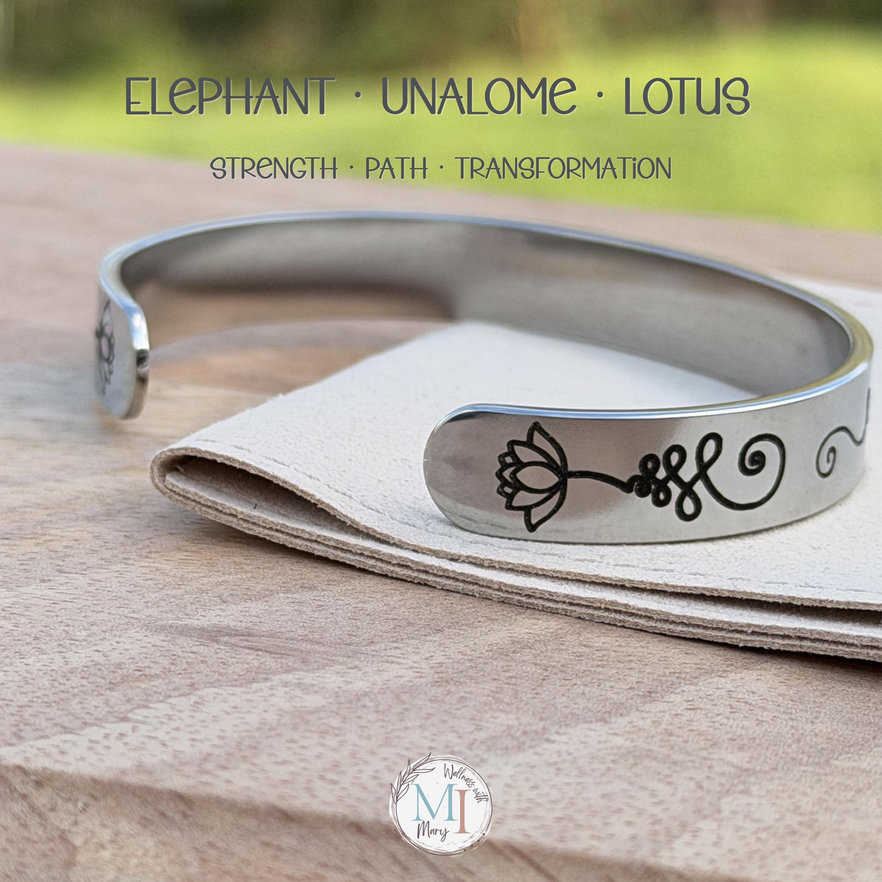 This meaningful cuff bracelet features a graceful elephant design whose trunk flows into an unalome, representing life’s journey with all its twists, challenges, and growth. Framed with delicate lotus flowers, this piece is a reminder that even through difficulty, we rise.