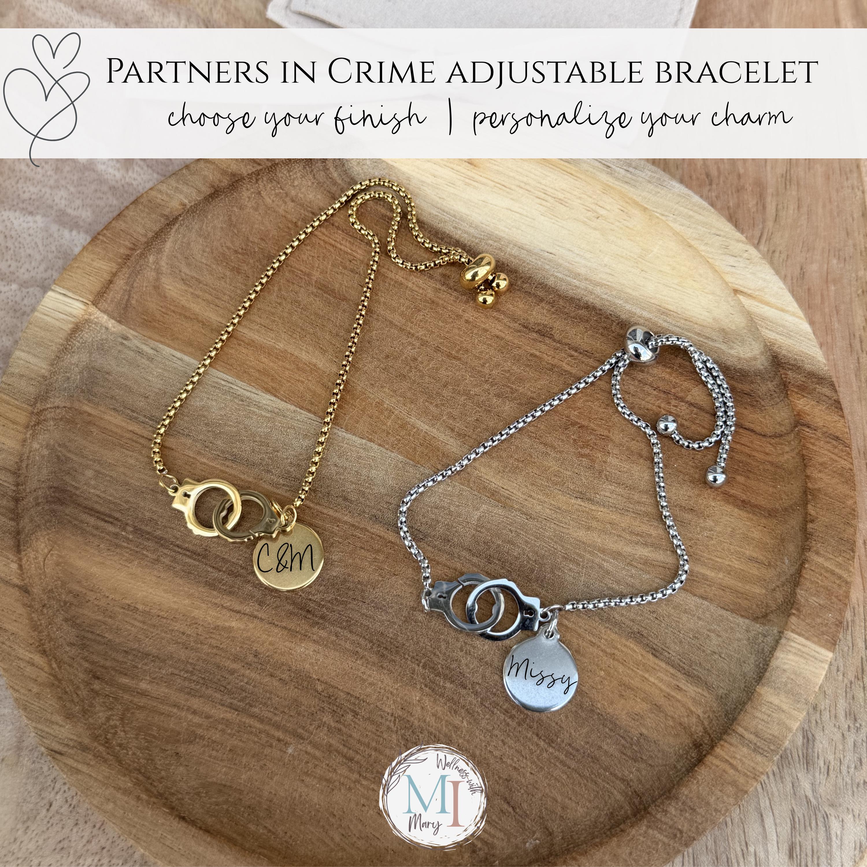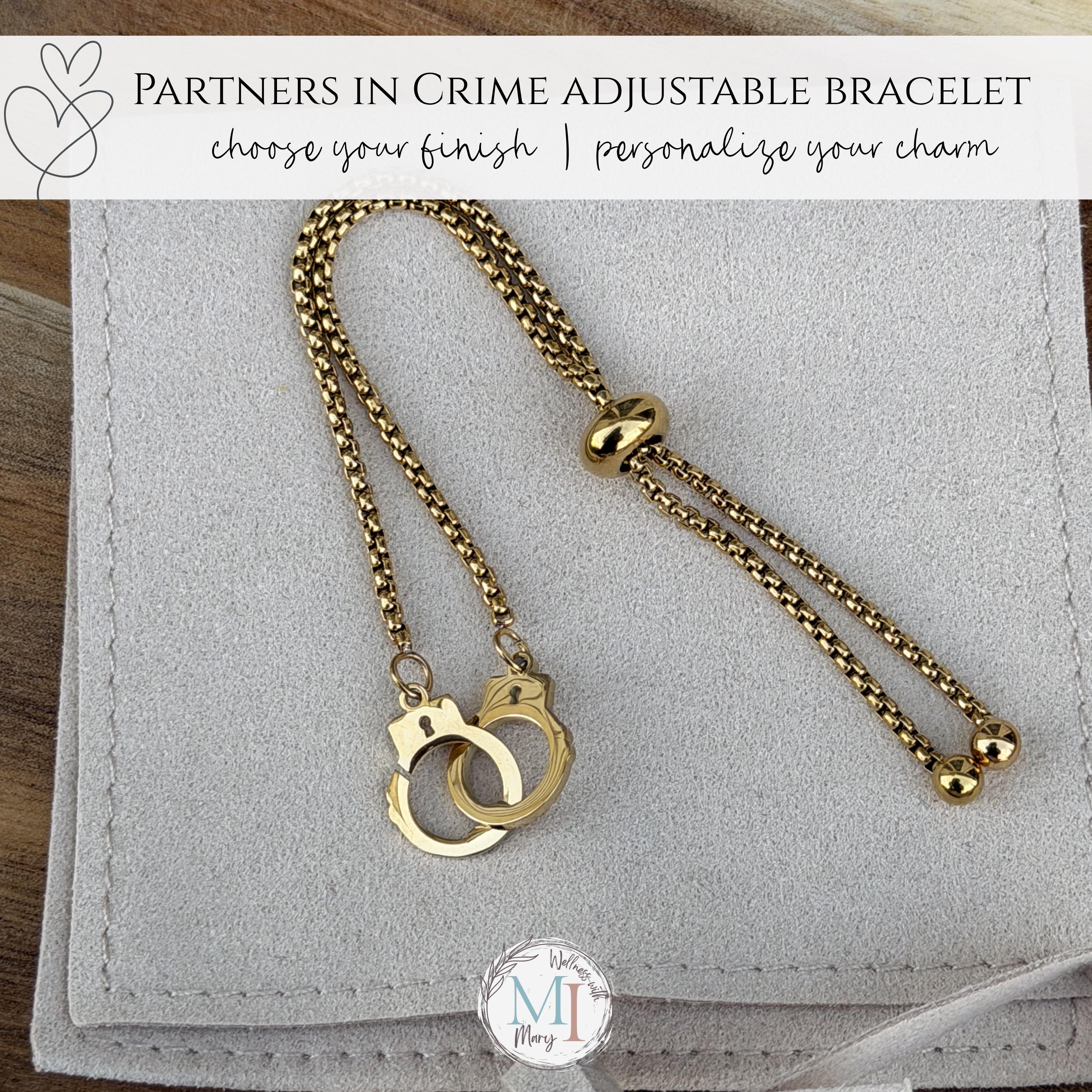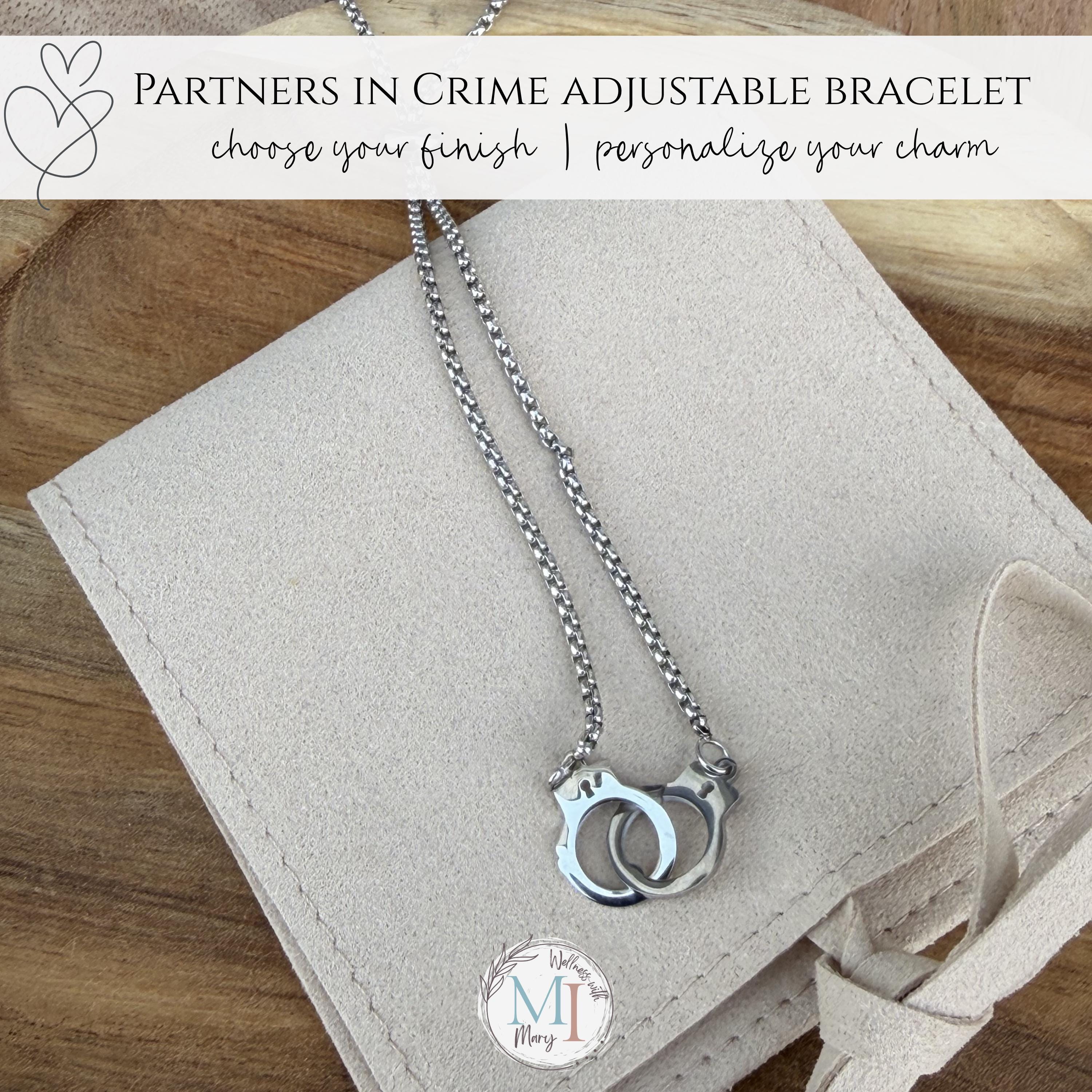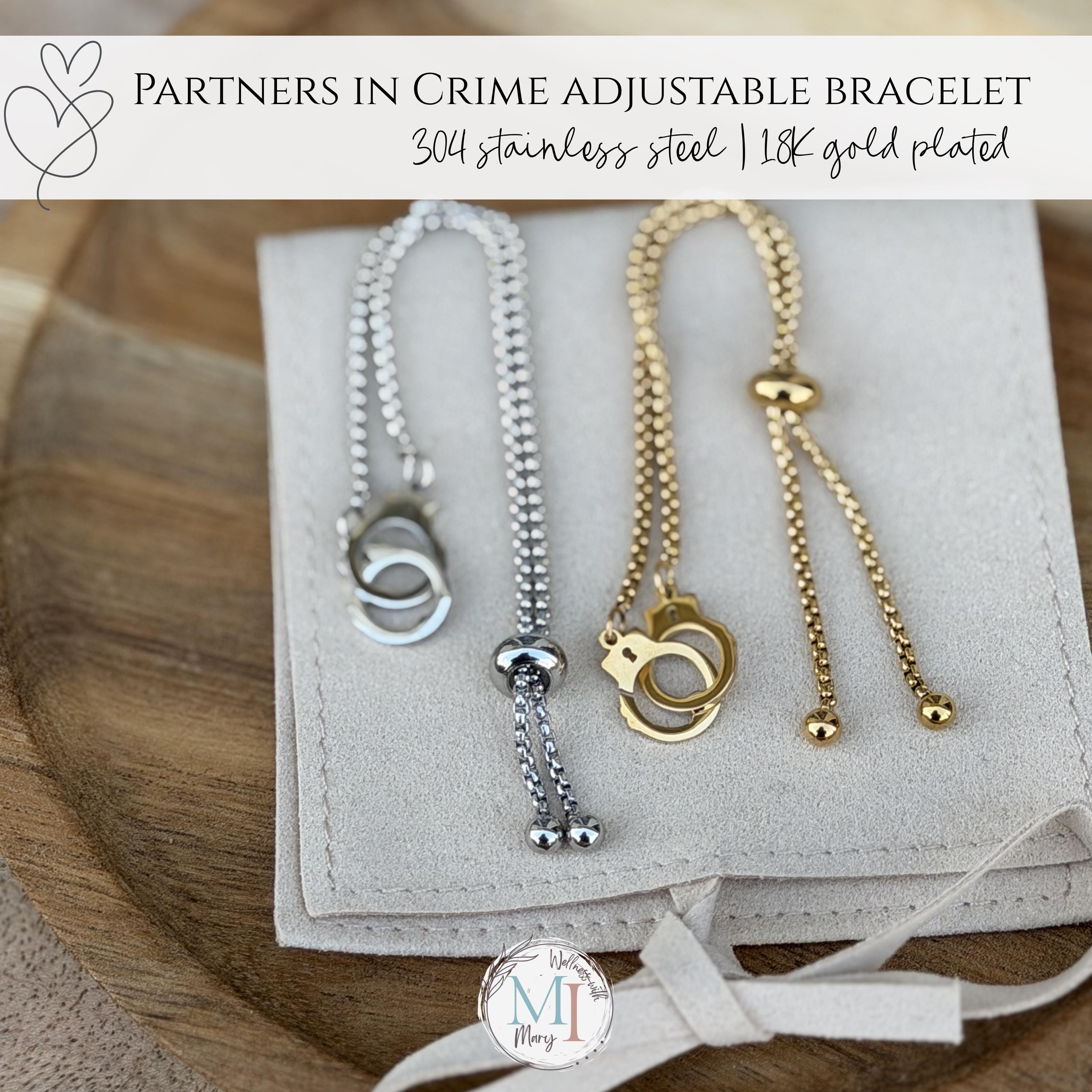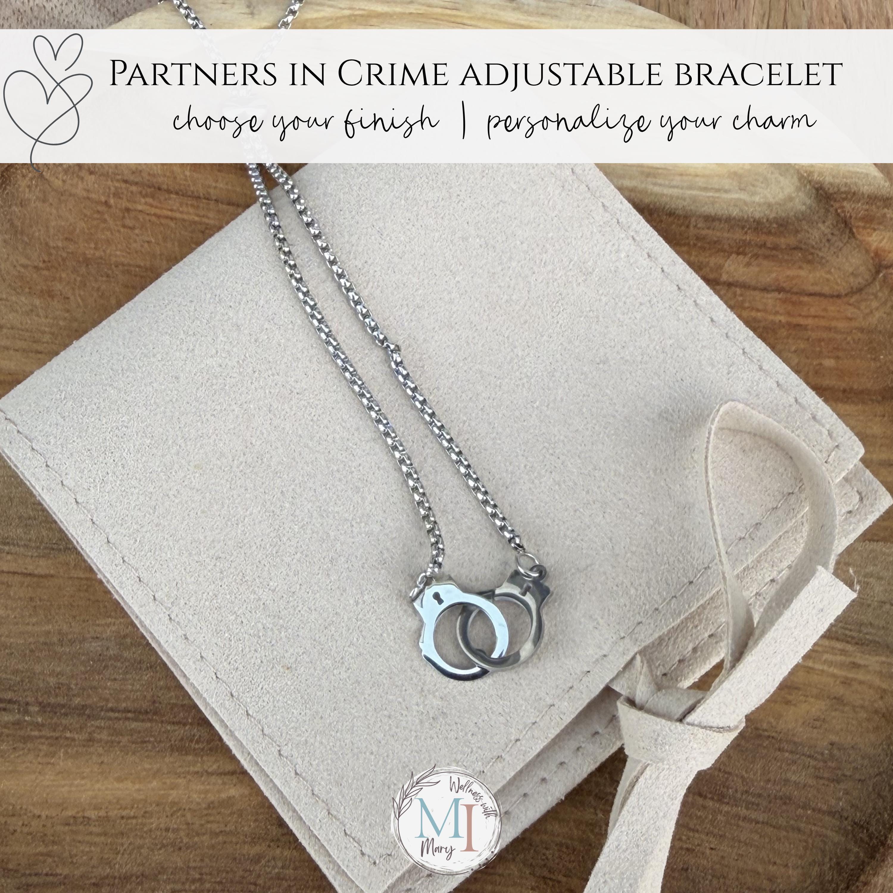 Personalized Handcuff Bracelet Couples Gift | Adjustable Partners in Crime Bracelet | Charm Jewelry | Stainless Steel Chain | Gold or Silver