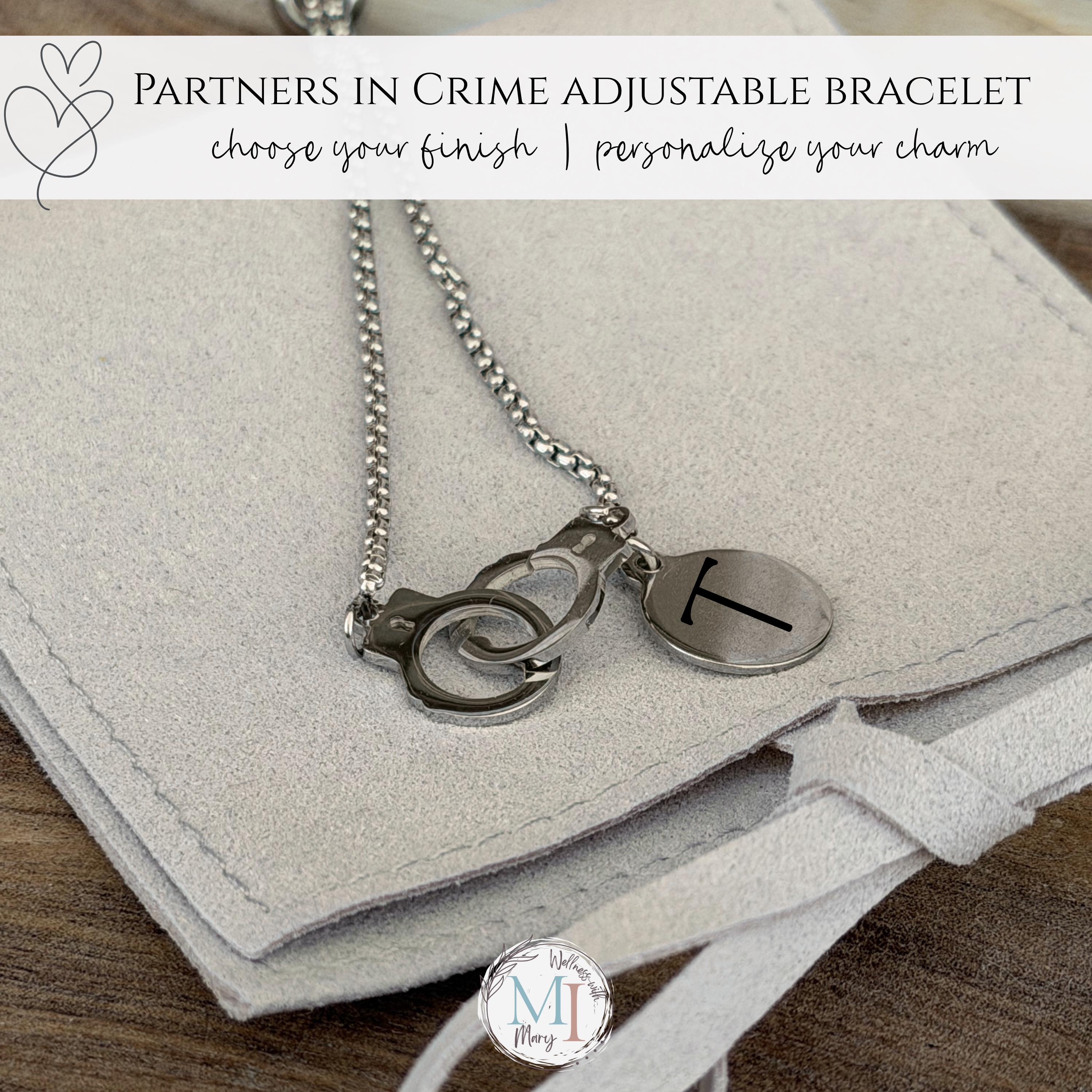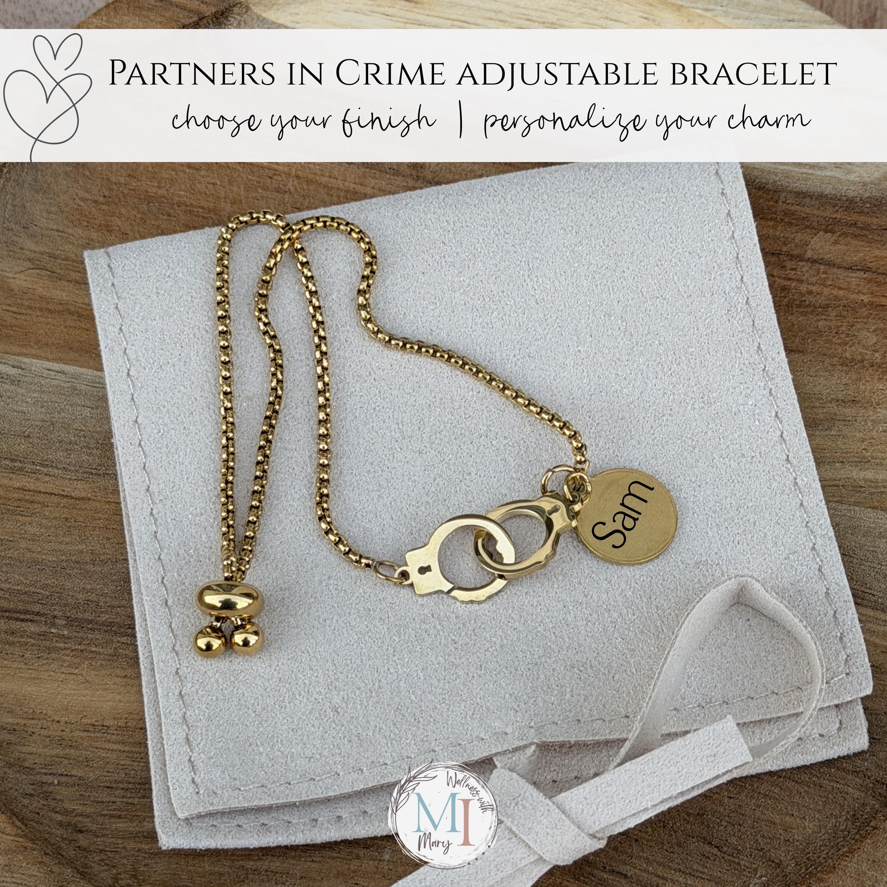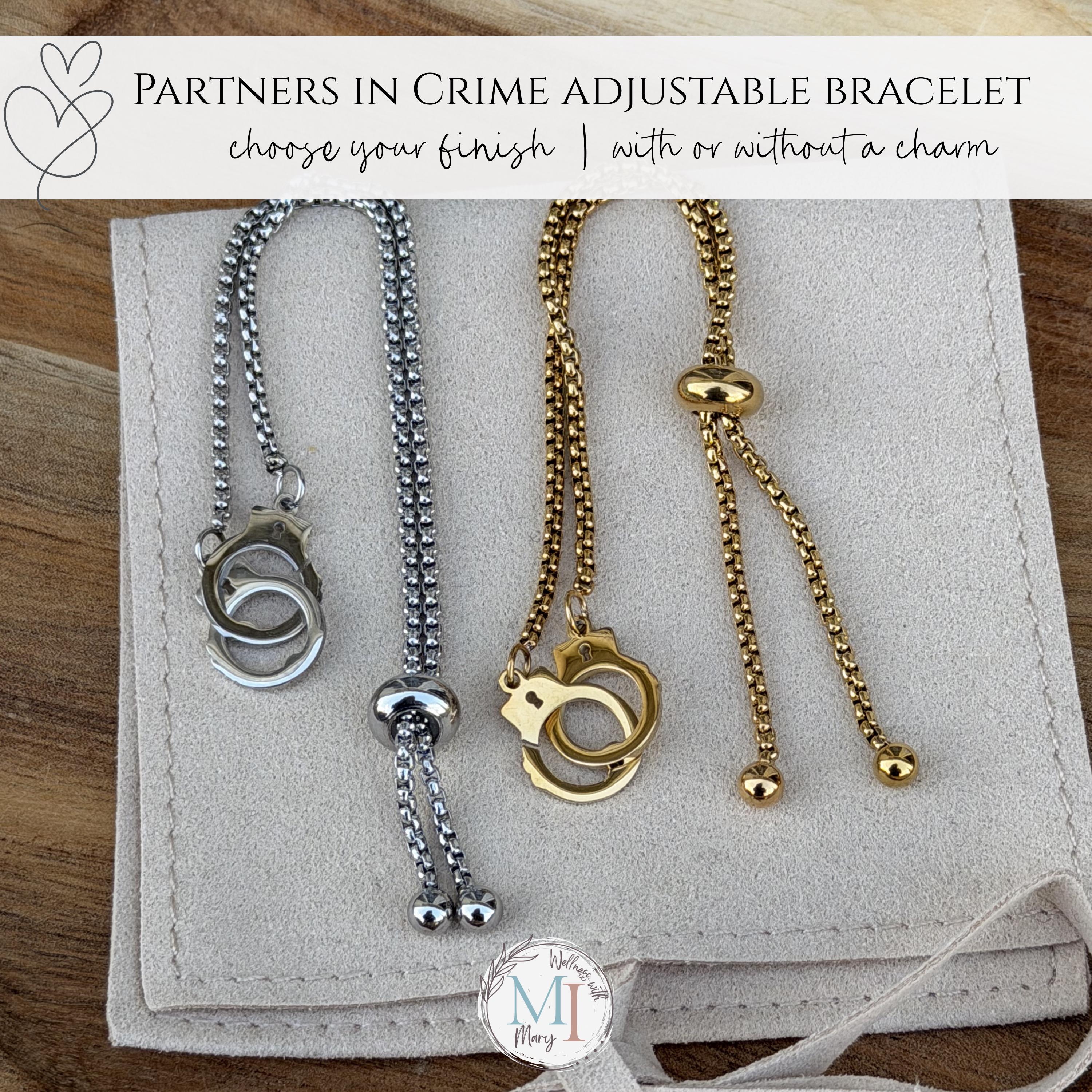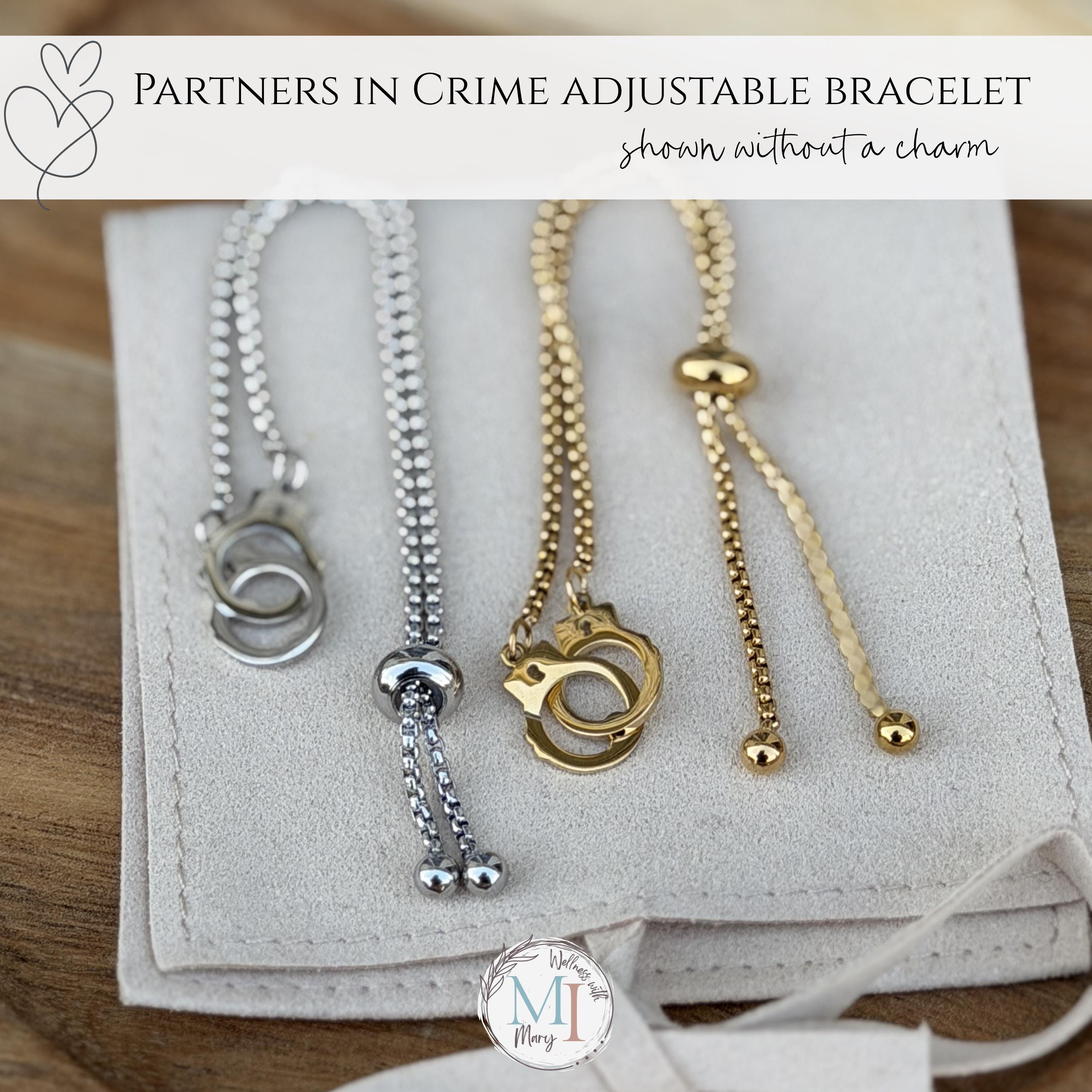 Personalized Handcuff Bracelet Couples Gift | Adjustable Partners in Crime Bracelet | Charm Jewelry | Stainless Steel Chain | Gold or Silver