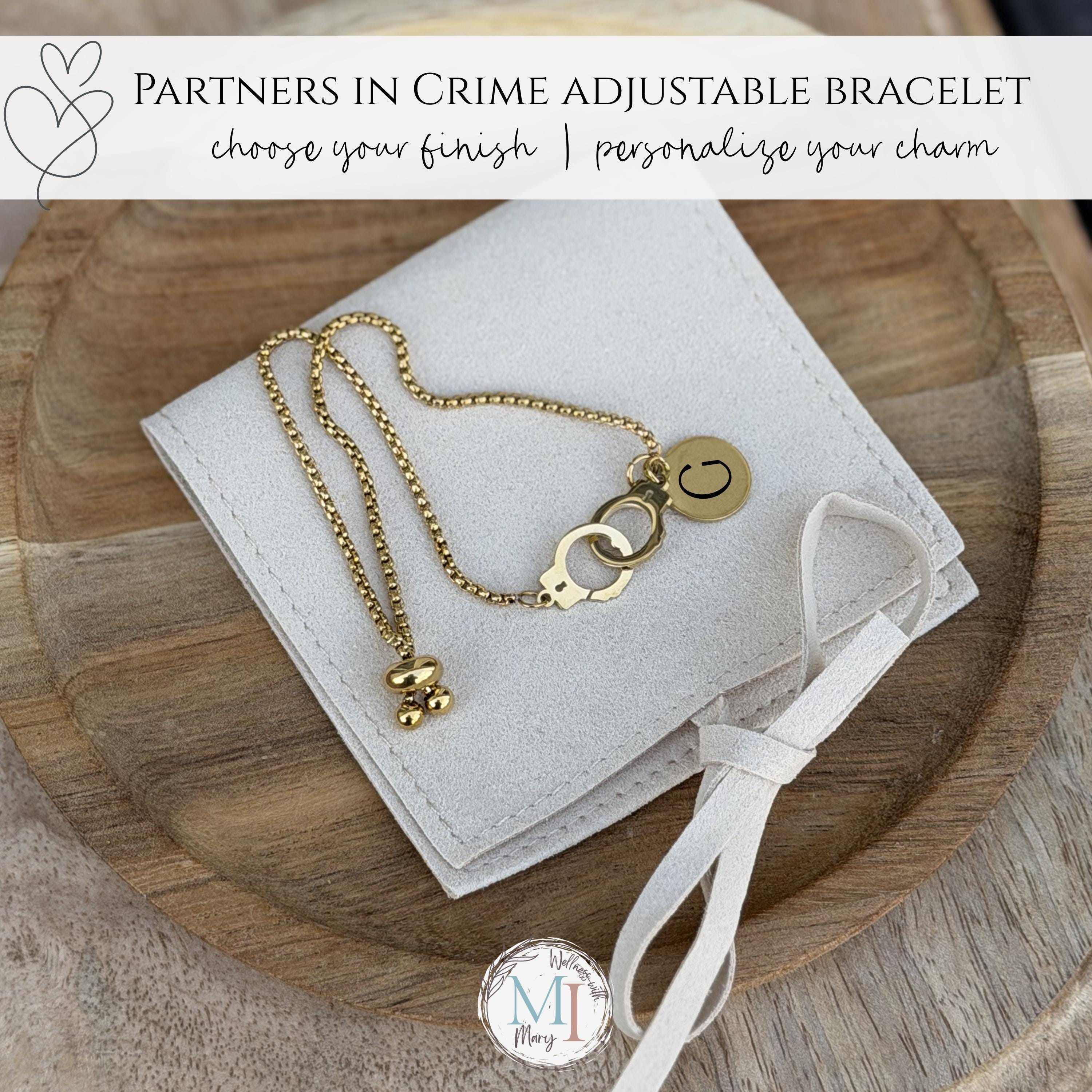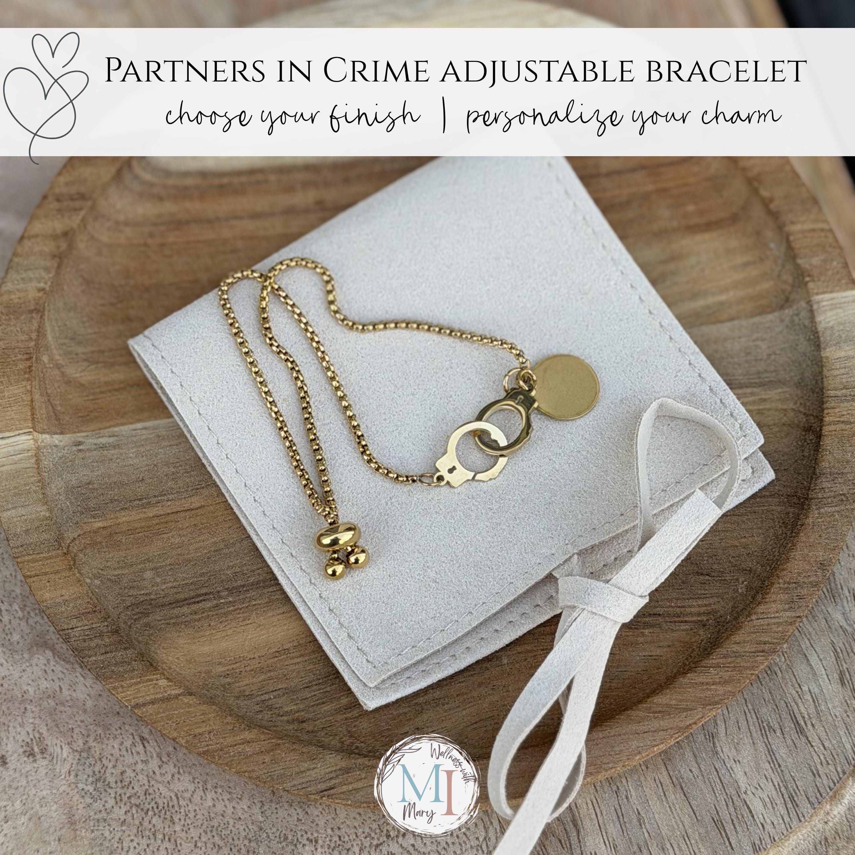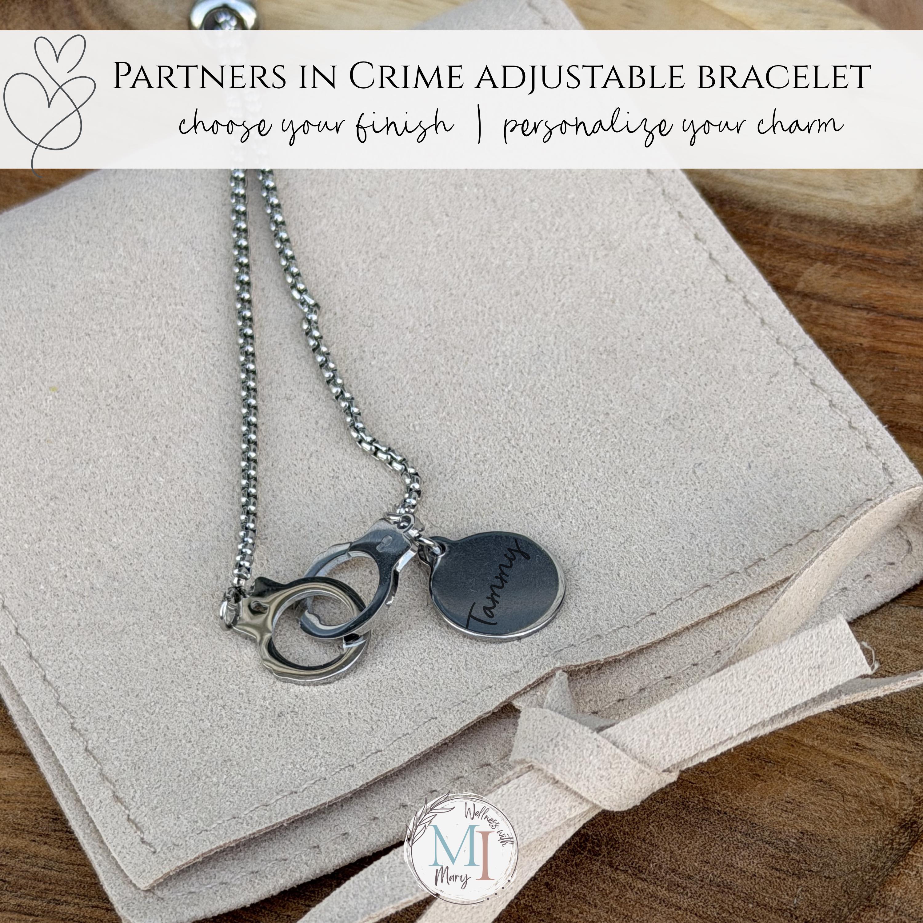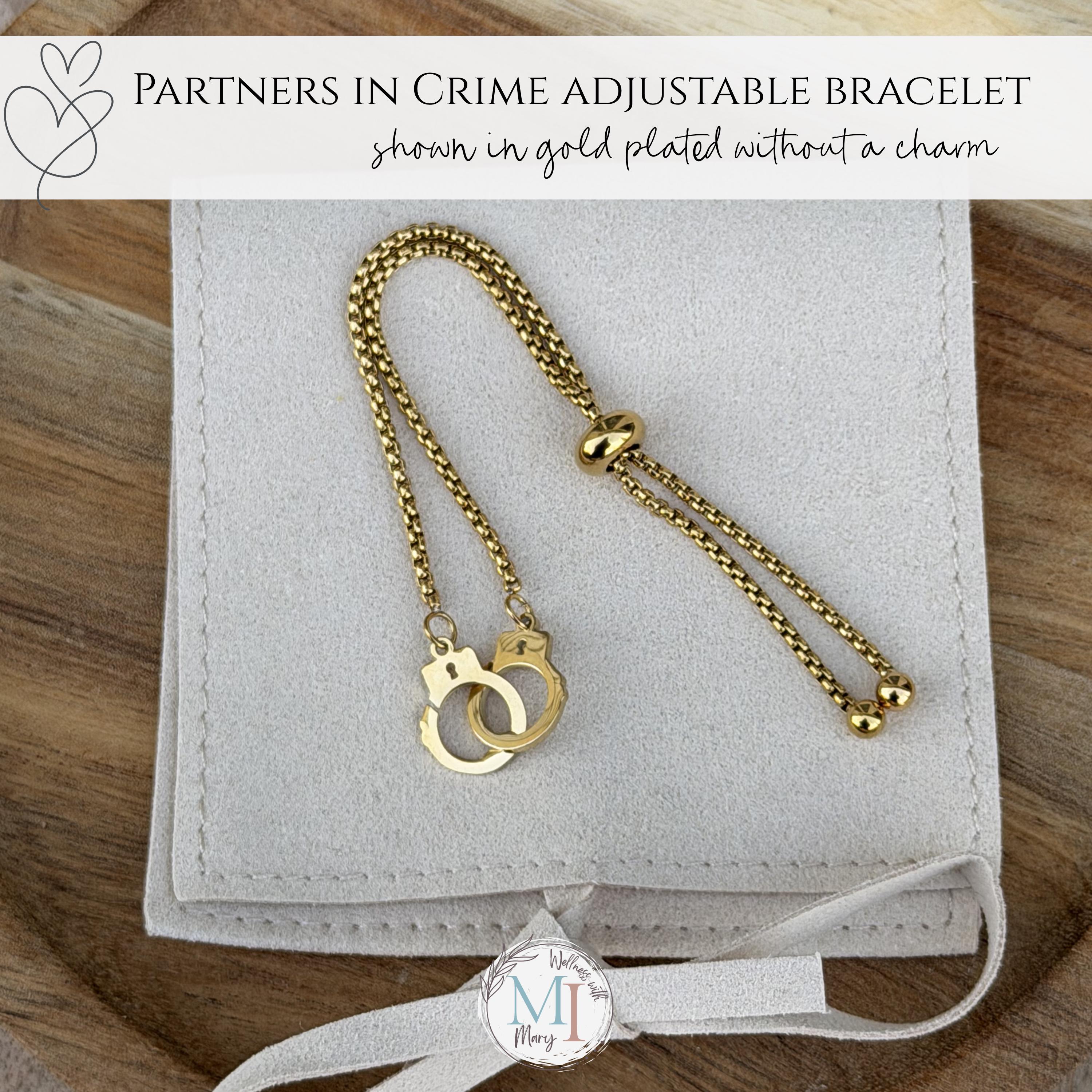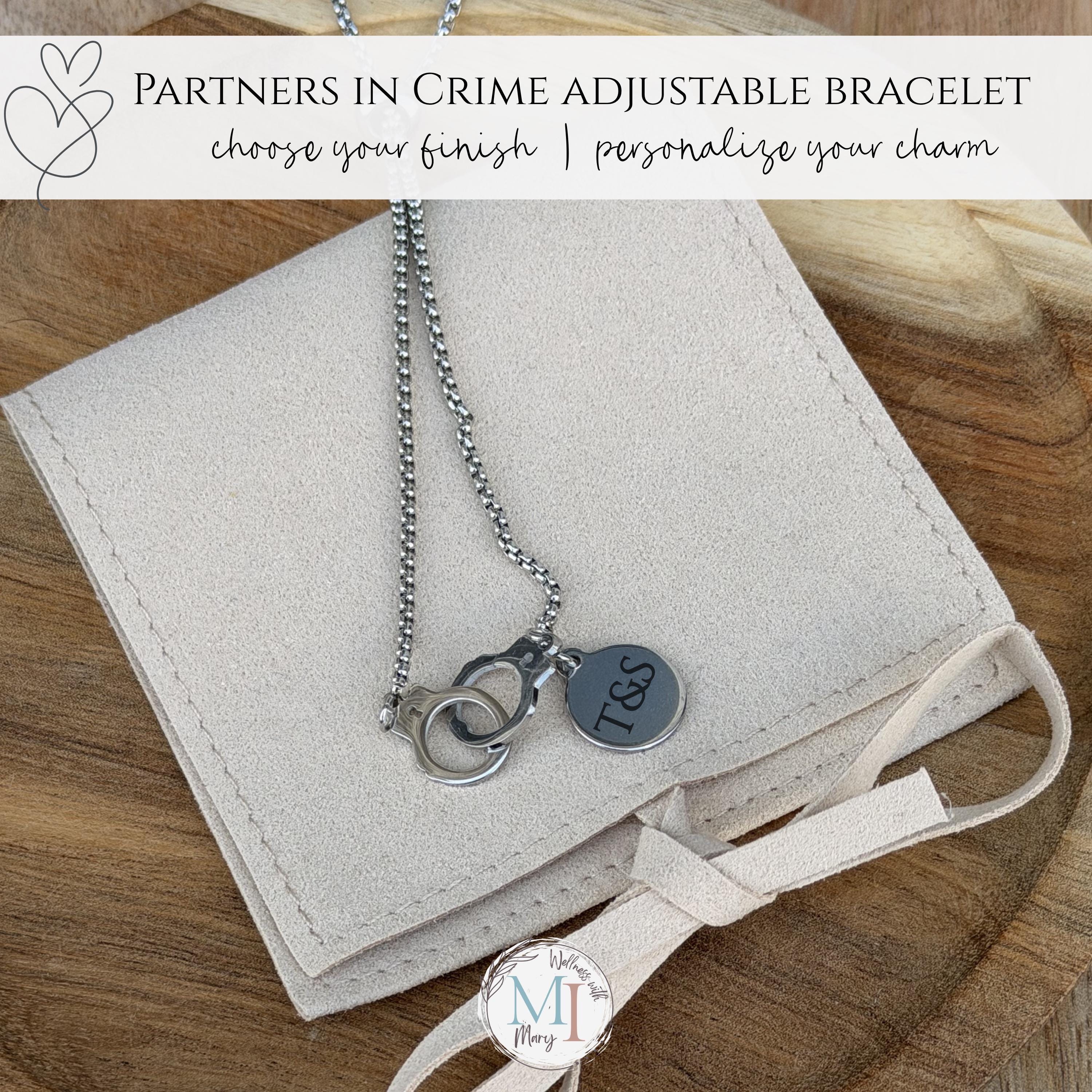 Personalized Handcuff Bracelet Couples Gift | Adjustable Partners in Crime Bracelet | Charm Jewelry | Stainless Steel Chain | Gold or Silver